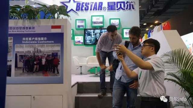原來是展會(huì)上的展機(jī)正在試機(jī),公司為了更好的讓客戶了解我們的產(chǎn)品,特地安排了展機(jī)的試機(jī)。此次演示的高速吹瓶機(jī)B20D-750, 2+2 雙工位,得到了客戶的高度關(guān)注,來自世界各國的客戶對(duì)星貝爾的技術(shù)實(shí)力給予了高度評(píng)價(jià)。