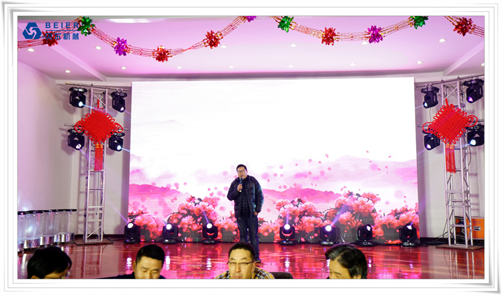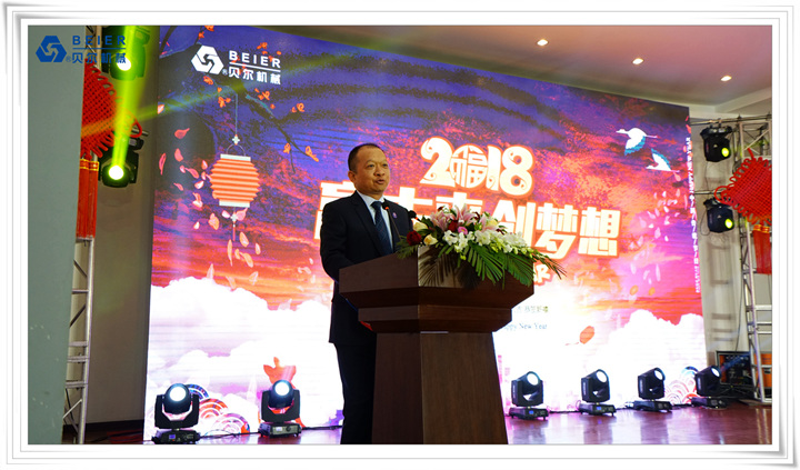 在表演開始前,董事長何德方致以新春致辭,他慷慨激昂地回顧了公司2017年取得的輝煌戰(zhàn)績一一感謝公司全體員工、各部門的辛勤付出,并展望2018年發(fā)展規(guī)劃,公司將繼續(xù)開拓創(chuàng)新,整合資源,所有貝爾人要攜起手來,為實(shí)現(xiàn)公司更高的目標(biāo)而奮斗!得到了全體員工的熱烈掌聲!在喜慶的祝酒音樂伴奏下,何董事長舉杯向所有同事和來賓祝酒,新春晚宴在一片熱鬧喜悅的氣氛中正式開始。員工代表清洗組:楊愛萍進(jìn)行了發(fā)言,她作為參與者,見證了貝爾機(jī)械二十年來的蓬勃發(fā)展,反映了貝爾自下而上的實(shí)干精神已經(jīng)成為貝爾的企業(yè)文化。