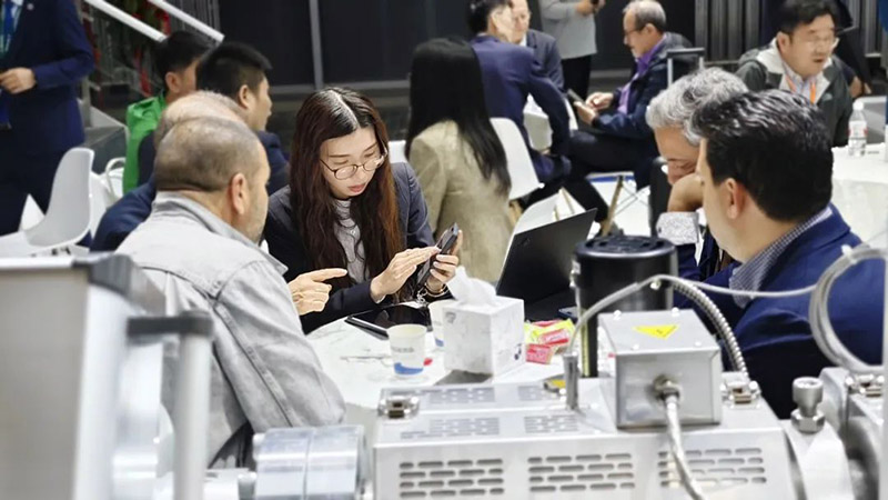在展位現(xiàn)場(chǎng),隨處可見(jiàn)前來(lái)參觀交流的專(zhuān)業(yè)觀眾,有的是咨詢(xún)集團(tuán)產(chǎn)品,有的是咨詢(xún)的集團(tuán)業(yè)務(wù)。洽談區(qū)已經(jīng)不能滿足大家的熱情,展臺(tái)內(nèi),展機(jī)旁,都是大家相談甚歡的身影。