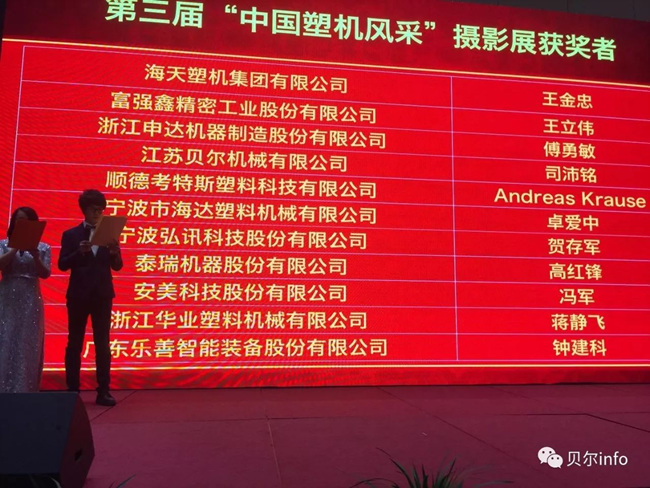 同期舉辦的第三屆"中國塑機(jī)風(fēng)采"攝影展。江蘇貝爾機(jī)械市場信息中心總監(jiān)司沛銘,其優(yōu)秀的攝影作品,榮獲大賽"一等獎(jiǎng)"、"三等獎(jiǎng)"等多項(xiàng)大獎(jiǎng)。